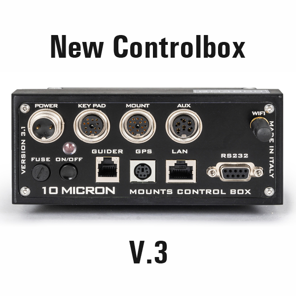 | Firmware main features | User defined mount parking position, 2-stars and 3-stars alignment function, up to 100 alignment stars for modeling, correction of polar alignment and orthogonality errors, estimate of average pointing error, storage of multiple pointing models, sidereal, solar and lunar tracking speed adjustable on both axes, declination-based autoguide speed correction, adjustable horizon height limit, pointing and tracking past meridian,, assisted balance adjustment, manual or GPS based time and coordinates setting, dome control via RS-232, configurable atmospheric refraction, network settings, comets and asteroids filter, multi-language interface. Remote Assist via Internet connection. |