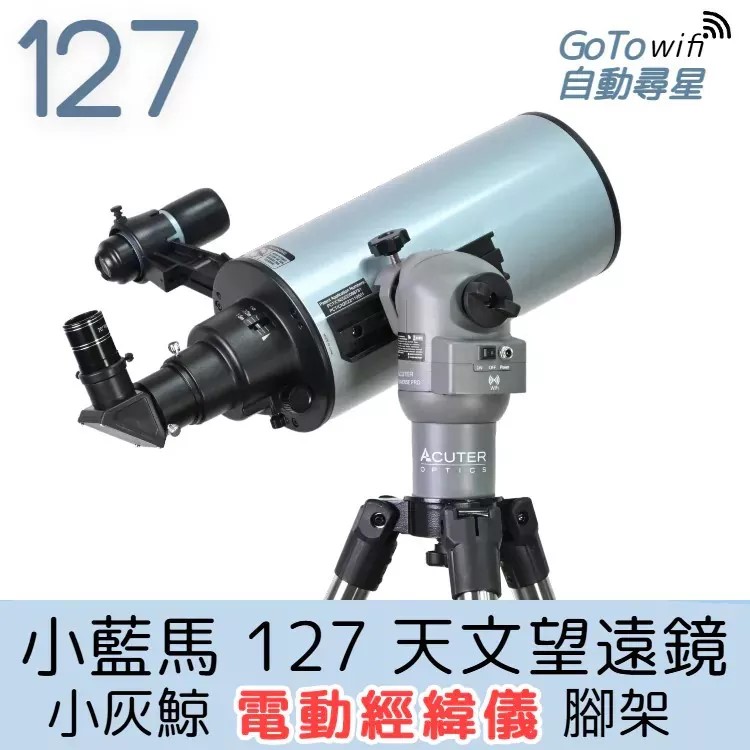 ACUTER【小藍馬127】127mm 天文望遠鏡+小灰鯨電動經緯儀腳架套組