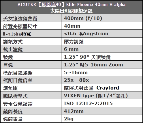 ACUTER【鳳凰座40】Elite Phoenix 40mm 太陽日珥觀測望遠鏡