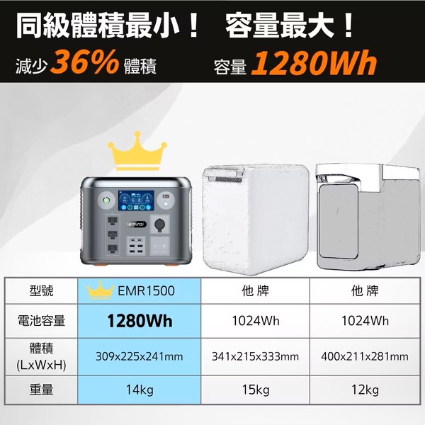emirai品牌 EMR1500 次世代行動電站 1500W大功率/1280Wh大容量