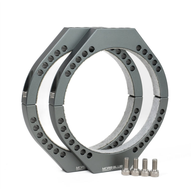 TB007 - 超輕量化設計 內徑114/115mm鏡筒環的上市 MORE BLUE 最新型的 114/115mm 鏡筒環,兼容高橋 114mm 鏡筒和 BORG 115mm 鏡筒。功能性和外觀都有所提升。 為避免調焦器等與鳩尾槽干涉,將鳩尾槽安裝部分與鏡筒外徑的間隔增加至 20mm。 附有安裝螺絲。 內側貼有防止鏡筒刮傷的毛氈。 可在 Vixen 規格的鳩尾槽上穩固的雙點固定。 安裝螺絲孔的規格為 M6,間隔 20mm。 規格 適用設備:外徑為114mm~115mm的鏡筒 材質:6061鋁合金 厚度:14mm 表面處理:啞光處理,太空灰陽極氧化 重量:350克 螺絲孔規格:中間1個M6螺絲孔,間距20mm的2個螺絲孔,間距35mm的2個螺絲孔