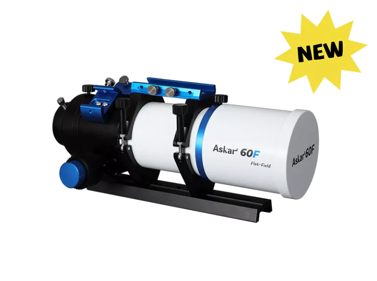 Askar 60F是一款口徑為60mm,焦距為408mm,原生焦比F6.8的天體攝星鏡,專為追求便攜與高畫質的天文愛好者設計。 Askar 60F的光學鏡頭為前三後一的四片式鏡片組合,其中包含一片ED玻璃,能夠有效減少色差。 Askar 60F支援全片幅拍攝,週邊星點品質優異。Askar 60F 採用自平場設計,使用者無需為其另外購買平場鏡,同時省去了複雜的後截距計算煩惱。接上相機,合焦後就是最佳的成像狀態,讓拍攝更輕鬆,體驗更純粹。