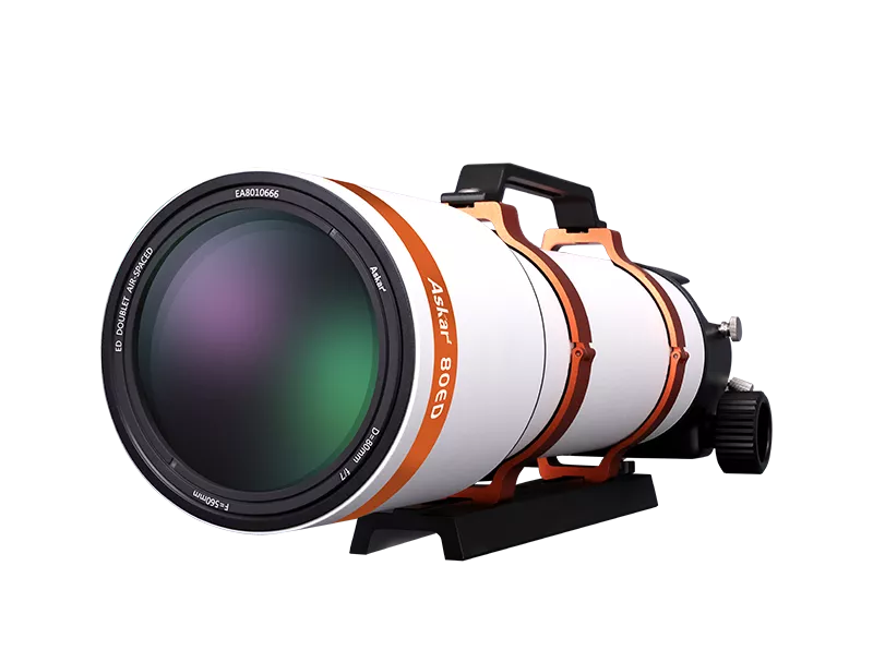 80ED是一款口徑為80mm,焦距為560mm,焦比為F7的攝星鏡。 光學鏡頭為兩片式鏡片結構,一片為ED玻璃,一片為普通消色差玻璃。
