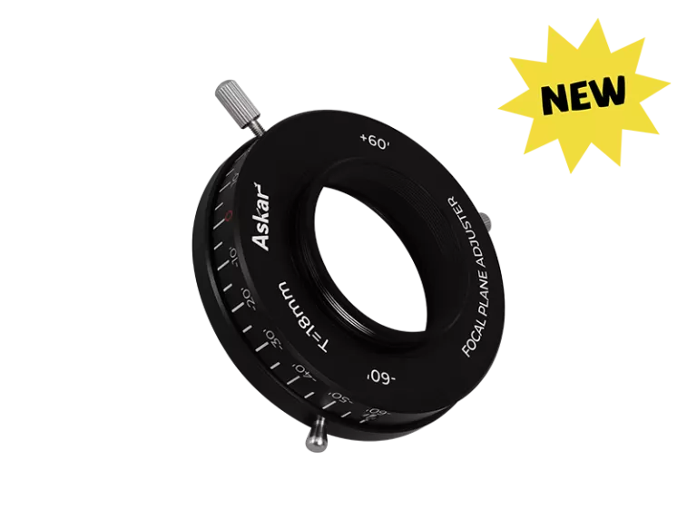 在日常天文攝影中,使用者經常會因為調焦器或相機晶片角度傾斜,導致拍攝效果不盡人意。隨著拍攝設備感測器尺寸的增加,對調整的精確度也要求更高,使用者需要精確地使感測器的平面垂直於系統的光軸。 Askar焦平面調節器有助於對調焦器或相機晶片的傾斜進行精密的調整,從而提升天文拍攝品質。
